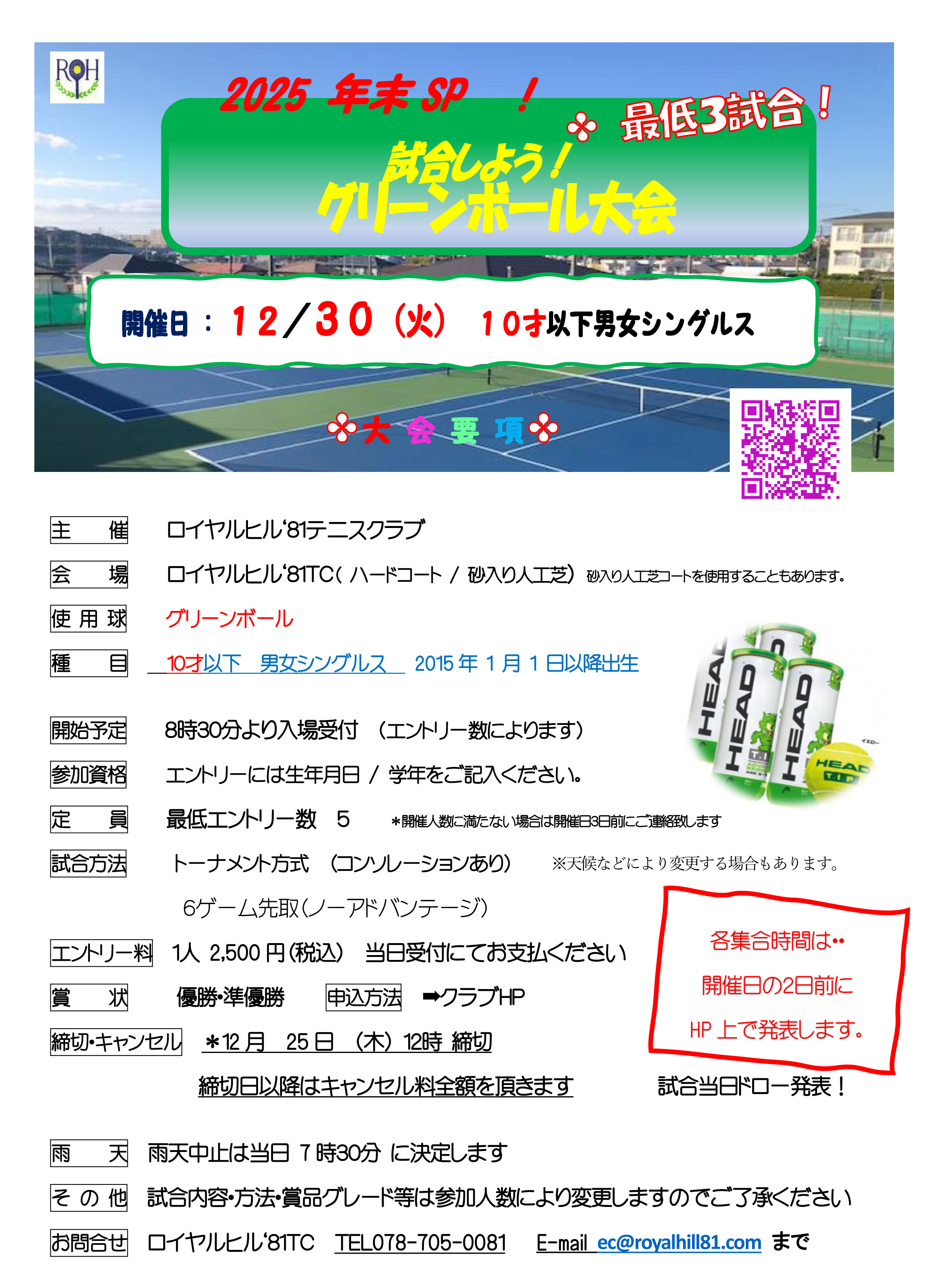 【年末SP】2025年12月30日 U10グリーンボール大会