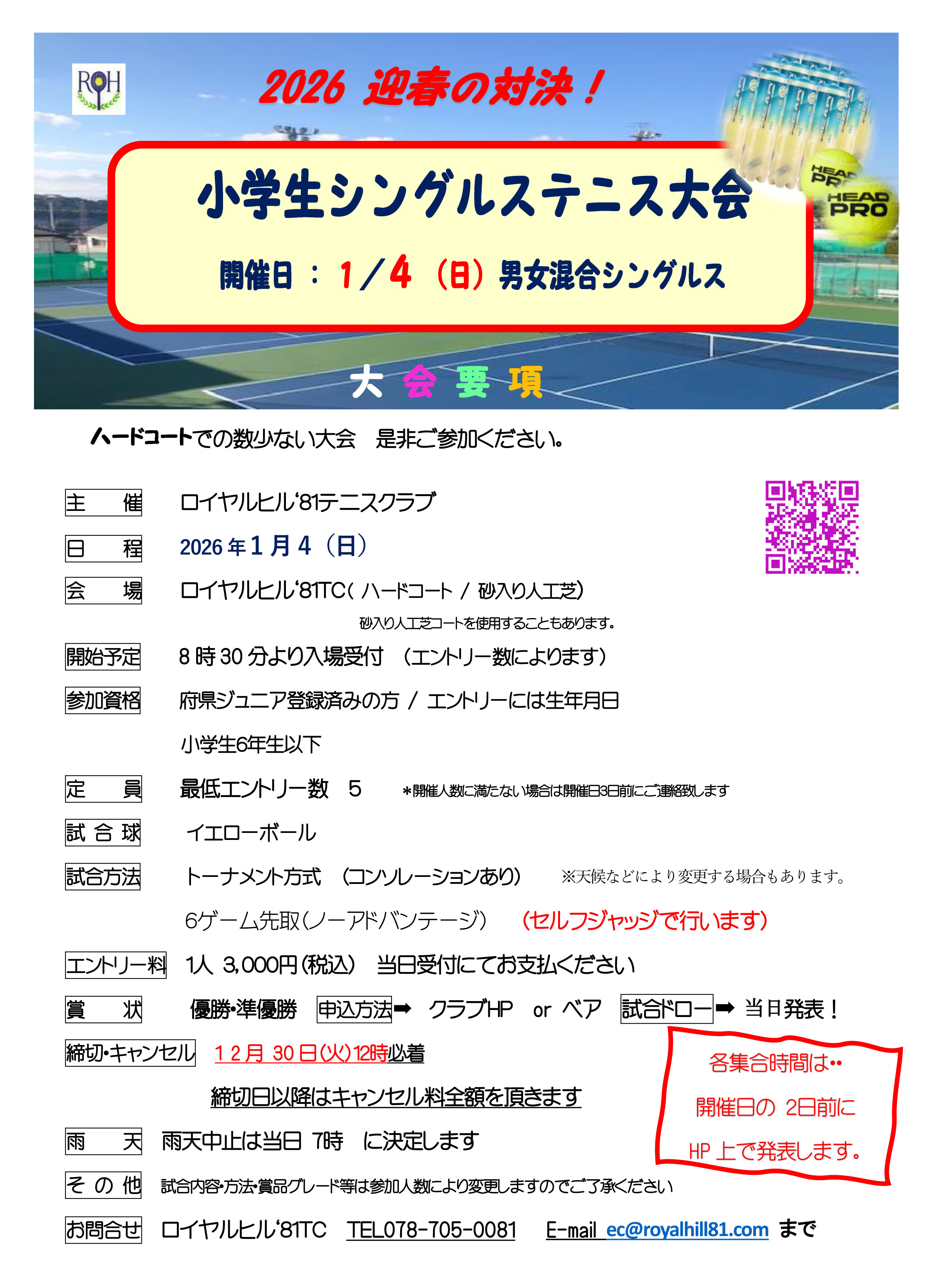 【迎春対決】2026年1月4日 小学生男女混合シングルス